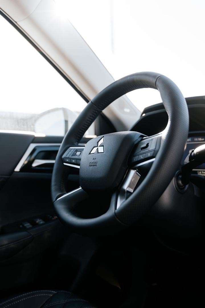 Visibility to both sides and front is adequate, thanks in part to the fairly horizontal window sill. The wide B-pillar slightly hinders lane change manoeuvres on the driver’s side, but the electronic blind-spot monitoring compensates for this. Mitsubishi has also cleverly included surround-view cameras with the LE version, the second in the catalogue. As regards side mirrors, they’re a good size.