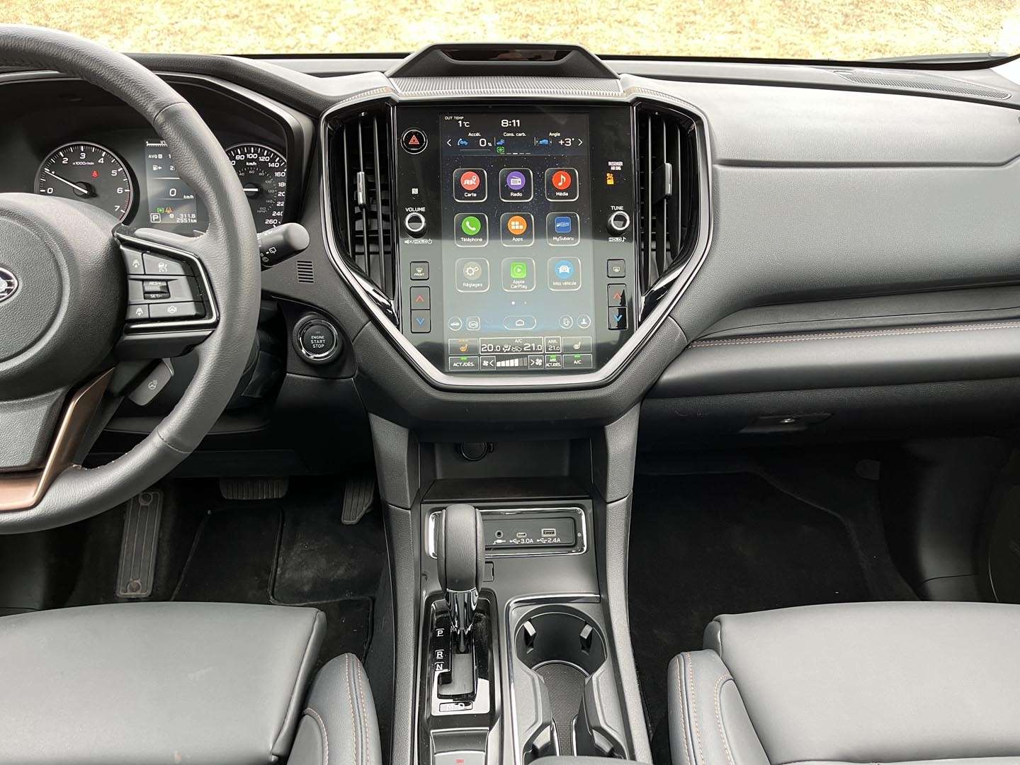Quant au tableau de bord, la relève s’en vient: l’Outback 2026 proposera un écran tactile entièrement redessiné, de nouveau disposé à l’horizontale, qui s’accompagnera d’un bloc de boutons physiques entièrement dédié à la climatisation. On peut parier que cet ensemble migrera dans toutes les Subaru à mesure qu’elle seront renouvelées.